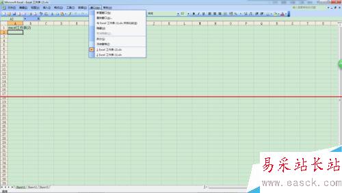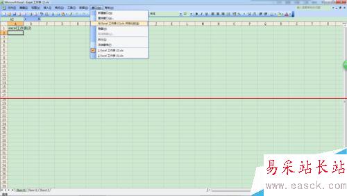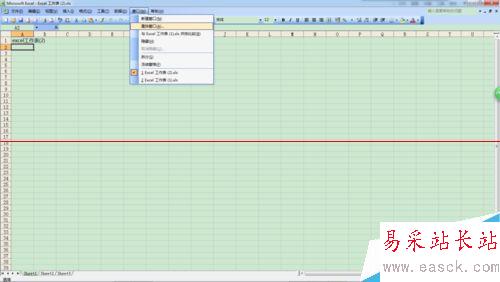 6、這里可以介紹一下“并排比較”的特殊用途;在“窗口”下拉窗中找到“與excel工作表(1)并排比較”;