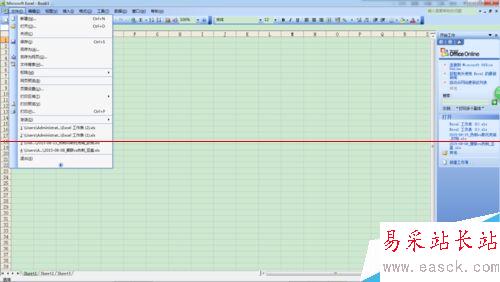 13、點擊Book1窗口工具欄中的“菜單”選項,找到“菜單”下拉窗口中的“打開”選項;