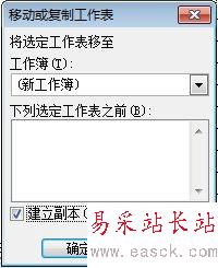 4、在新窗口中參照下圖操作,即將本工作表完全復(fù)制到一個(gè)新的工作簿中;