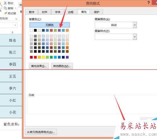 5、選擇填充之后會進入到顏色填充控制面板,此時我們選擇好我們的填充顏色,因為我們要求和的單元格是紫色的,所以此時我們選擇紫色填充顏色,選擇好之后單擊下方的“確定”按鈕。