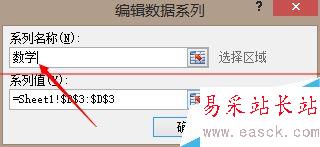 7、編輯系列的名稱。并以步驟4、5的方法選擇水平軸的標簽。點擊確認