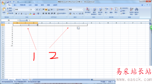 2、在這教大家一個小技巧可以方便快速輸入序號(1.2.3.....10),行,列方法都可以用,就是在前面3個序號先手動填寫進去,如B1  1 , C1 2  , D1  3,然后選中這三個單元格,出現(xiàn)了一個實心的“+”,你就可能橫向拉動到J1,結果你就可 看看,