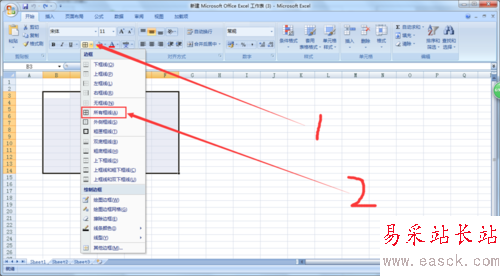 2、在菜單欄中找到一個“田”字型的按鈕,也就是“邊框”,點擊,然后在下拉出來選項中選擇“所有框線” 意思是所選區域全部都顯示邊框線