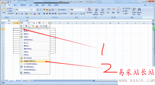 3、選中需加斜線的單元格(一般是左上角),右擊 --選中“設置單元格格式”