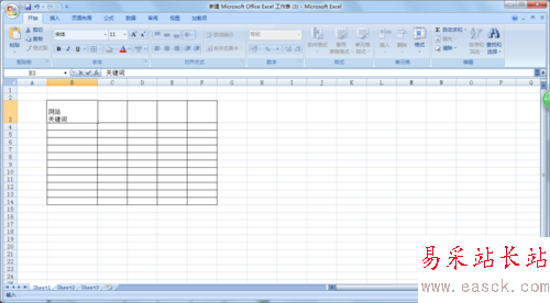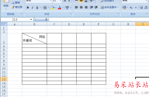 6、在單元格中輸入斜線劃分的文字標題,***注***要用“ Alt + 回車鍵 ”換行輸入第二個,如:輸入完“網站 ”,“ Alt + 回車鍵 ”換行,再寫“關鍵詞”