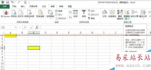 2、先選中C5,然后點擊審閱標簽下的“數據驗證”