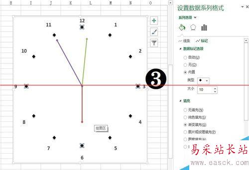 3)添加小時刻度的數據標簽(自己往上填寫1到12就可以了);