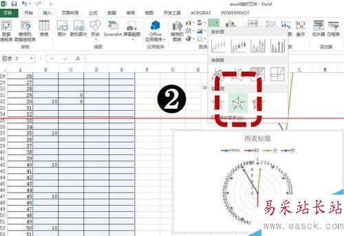 1)選擇B、C、D、E單元格數據,插入——帶數據標記的雷達圖;