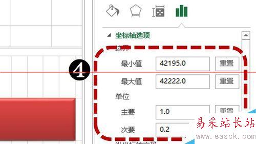 注意事項(xiàng):水平坐標(biāo)軸最大值、最小值按照起始時(shí)間來確定,可以將時(shí)間復(fù)制,粘貼成數(shù)值,就可以得到最大和最小值了。
