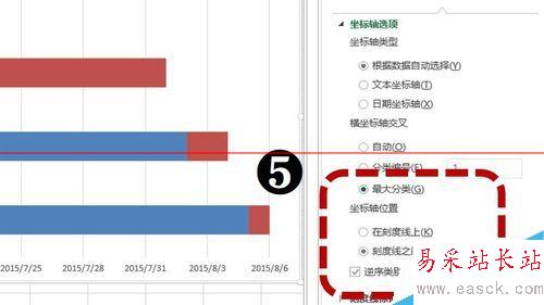 2)調(diào)整垂直坐標(biāo)軸:將“逆序類別”打勾,將“最大分類”打勾“(如下圖二所示)。