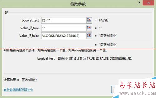 4、在彈出的”函數參數“對話框中,設置Logical_test參數為”I2=“”,將Value_if_true設置為“”,也就是空白內容。