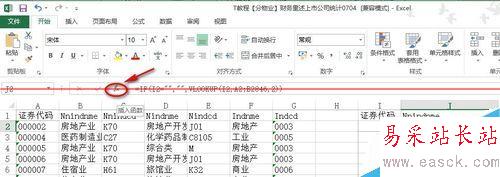 我們可以做一個表格,只需要把我們需要的公司代碼列復制進去就會自動顯示其行業統計情況。也就是從浩如煙云的數據中,提取需要的數據對應的行中的數據。下面就以我剛剛解決的這個問題為示例詳細說明一下。