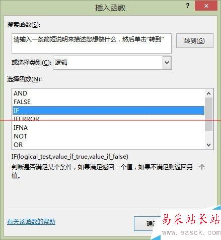 3、彈出”插入函數“對話框,設置其類別為”邏輯“,并選擇列表框中的IF選項。然后確定。