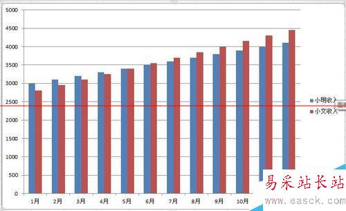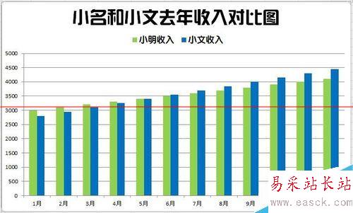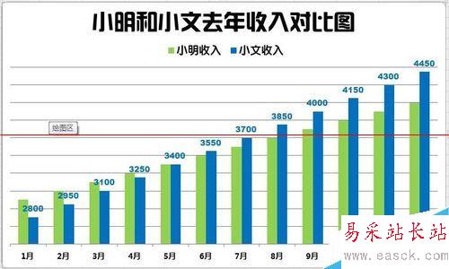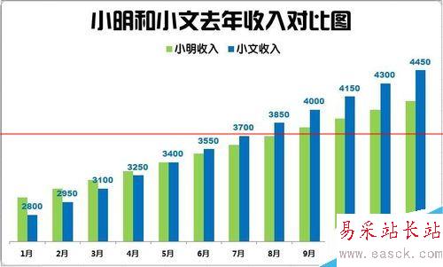 9、整體再設(shè)計。這一步需要具體問題具體分析。本圖因為是逐漸增加的風(fēng)格,所以需要強(qiáng)化這個增加的趨勢。把標(biāo)題更改為居中覆蓋標(biāo)題,那么柱形將進(jìn)一步擴(kuò)大。同時手動將標(biāo)題和圖例移動到左邊的空白區(qū)域,使整個圖更顯穩(wěn)重。