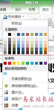 5、設(shè)計柱形填充顏色。點選相同系列柱形,在圖表工具→格式→形狀填充中選擇顏色。