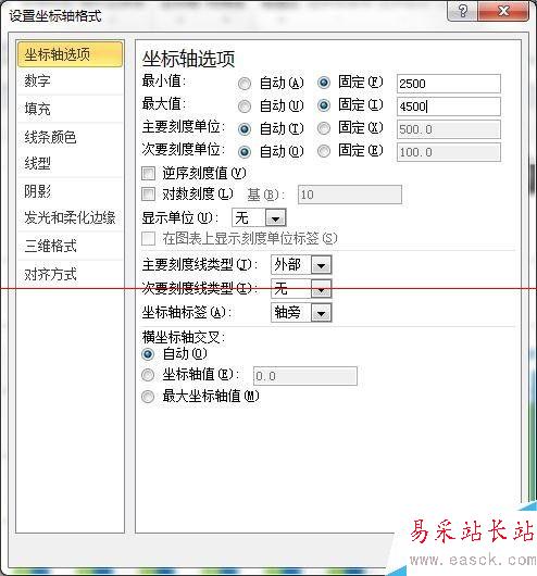 7、設(shè)計坐標(biāo)軸。為了強(qiáng)化逐漸增加的趨勢,可以將縱坐標(biāo)軸的最大和最小刻度進(jìn)行更改。因為已經(jīng)顯示出了數(shù)據(jù)標(biāo)簽,所以沒必要再需要縱坐標(biāo)軸,點擊選擇縱坐標(biāo)軸,將其刪除。點選橫坐標(biāo)軸,更改字體和字號。