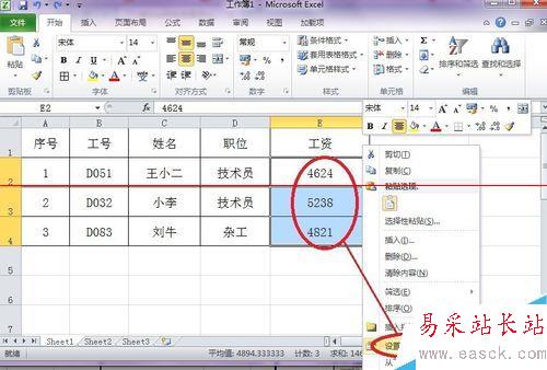2、選擇我們需要添加單位的數(shù)值,然后點擊右鍵菜單,選擇設(shè)置單元格格式項。