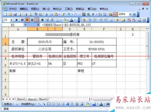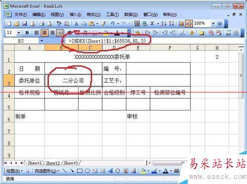 3、填寫數(shù)據(jù):以委托單位為例:在B3中填入公式