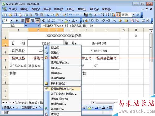 5、這里注意日期單元格格式調(diào)整一下:在該單元格點(diǎn)右鍵->設(shè)置單元格格式