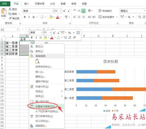 5、鼠標左鍵選中左側(此處為B列)的數據,然后點擊鼠標右鍵,在彈出的快捷菜單中選擇“設置單元格格式”;