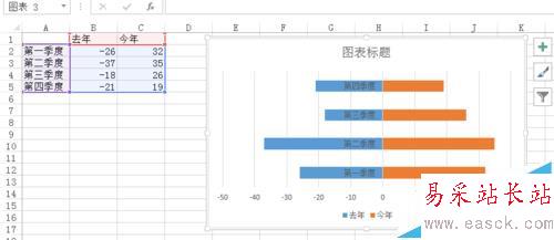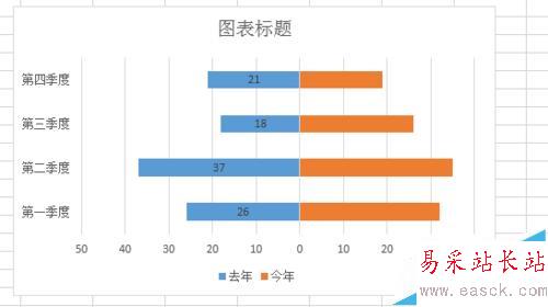 不知道大家有沒有在日常工作中看到過下圖這種風格的水平柱狀圖,數據分布在縱坐標軸的兩側,如下圖,對比效果一目了然,那么如何實現這種水平柱狀圖的效果呢,下面跟隨小編的步驟來實現這種效果吧!