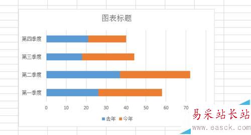 3、鼠標左鍵選中如下圖所示二維堆積條形圖圖標,即可生成下圖所示水平柱狀圖;