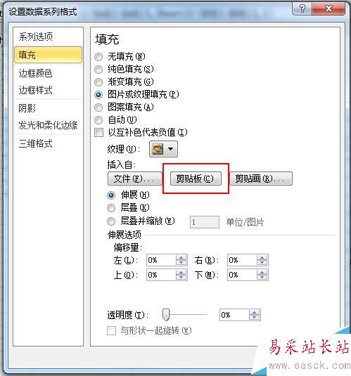 4、插入-形狀,選擇三角形的形狀,繪制兩個三角形,一個正三角,一個倒三角,分別填充好要給柱形圖填充的顏色(本例為藍色和橙色),先選中正三角,Ctrl+C復制到剪貼板,然后選中位于正軸的數據,右鍵設置數據系列格式,填充設置為圖片與紋理填充,選擇來源是剪貼板(如圖2所示),同理可對負軸的數據填充繪制好的倒三角形,得到下圖3.