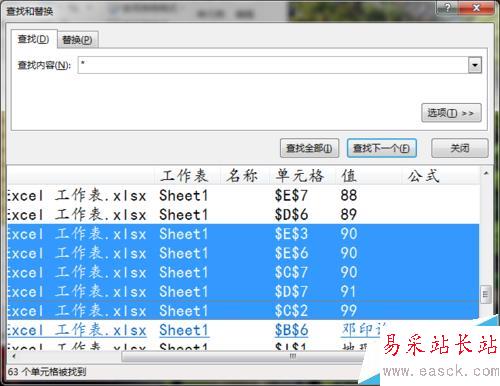 3、在”查找內容“輸入  *   ,點擊”全部查找“
