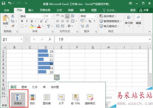 6、如果想把內(nèi)容轉(zhuǎn)化成數(shù)據(jù)條,如圖所示,點擊數(shù)據(jù)條即可,數(shù)字就直觀的表現(xiàn)出來了