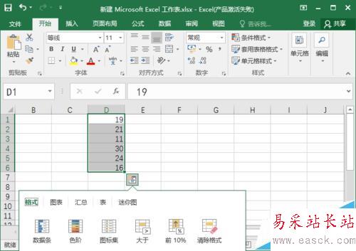 excel2016怎么使用快速分析制作數(shù)據(jù)條?