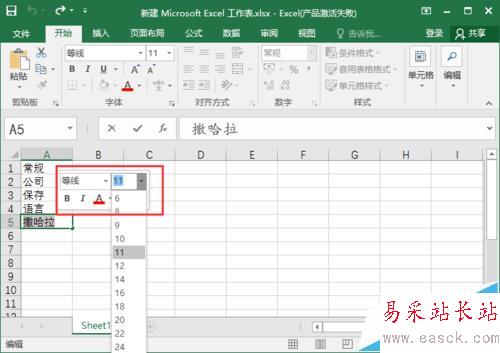 4、選中內容,如“語言”,就會自動彈出浮動框,然后根據需要選擇所需字體、字號