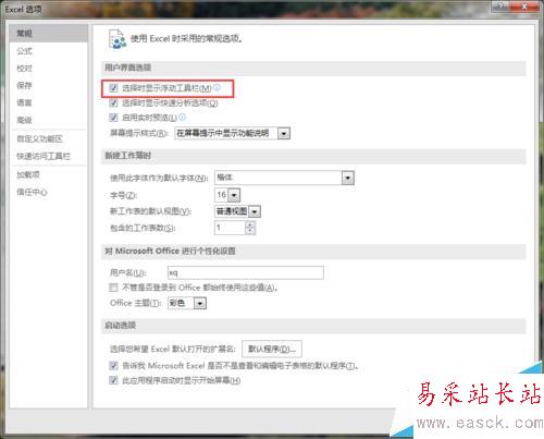 3、點擊“選擇時顯示浮動工具欄”,打上對勾,點擊“確定”