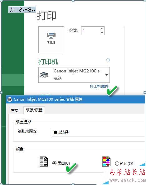 3、省墨省時打印 平時我們打印出來用來核對的表格,沒有必要采用打印機(jī)默認(rèn)的正規(guī)彩色或高分辨打印。這時,有許多設(shè)置技巧可以幫助你省時、省墨。 在打印設(shè)置窗口中,如果將打印質(zhì)量選項的“顏色”選擇為“黑白”打印,由于節(jié)省了彩色原料,可以大大節(jié)省墨水或墨粉的成本。同時,由于黑白打印速度要遠(yuǎn)遠(yuǎn)高于彩色,因此還提高了打印效率,節(jié)省了時間。