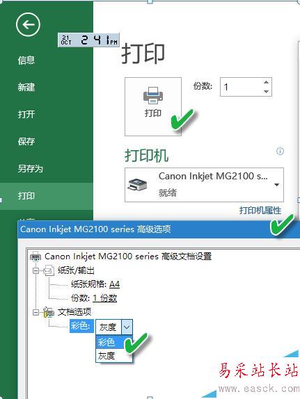 4、如果黑白打印會丟掉某些圖案細(xì)節(jié),那么可改為“灰度”打印。在打印設(shè)置窗口中,通過設(shè)置“打印機(jī)屬性”,點(diǎn)擊“高級”按鈕進(jìn)入“高級選項”設(shè)置窗口,可將文檔選項從“彩色”改選為“灰度”,則可以