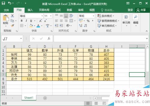 3、同時點擊“Alt”+“=”,橫向和縱向數據即統計出來了