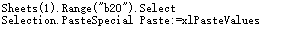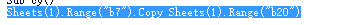 6、當(dāng)然使用粘貼方法,非常的精確,但是也造成了部分使用上的不便,因?yàn)檎迟N方法需要多種參數(shù)。如果只是復(fù)制值,那么我們可以直接使用一個簡單的方法,直接將目標(biāo)單元格或區(qū)域作為copy的參數(shù)輸入。例如Sheets(1).Range("b7").Copy Sheets(1).Range("b20")