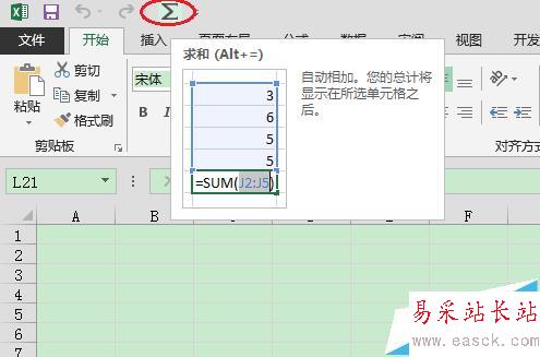 4、然后我們可以看到,求和標志已經(jīng)添加到右側了: