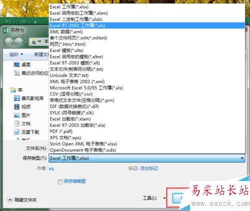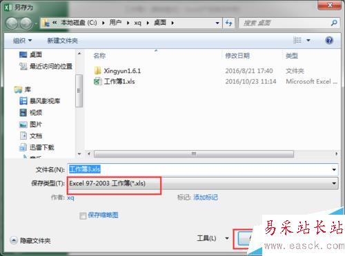 15、選擇經(jīng)常用的類(lèi)型,如excle97-2003工作簿(*.xls)點(diǎn)擊“確定”