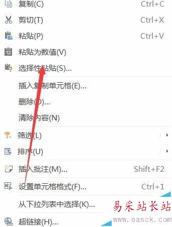 5、右鍵再次單擊,選擇“選擇性粘貼”