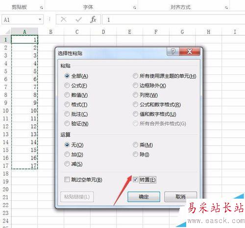 6、在彈出的對(duì)話框中,我們選擇【轉(zhuǎn)置】