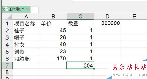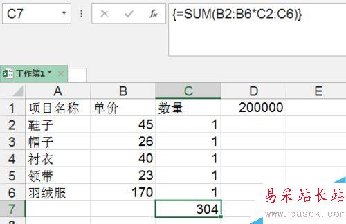 3、然后也將這些基本的買1件情況下的和算出來。(告訴小技巧可以使用數組求和。)