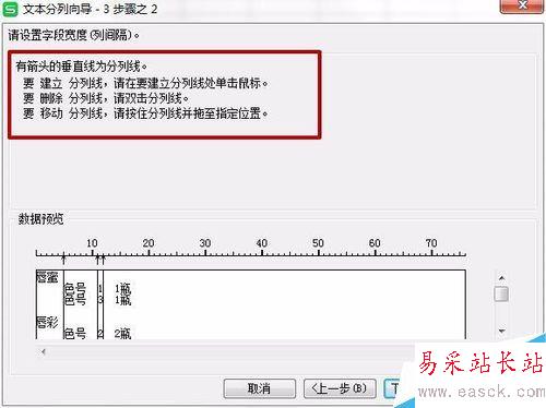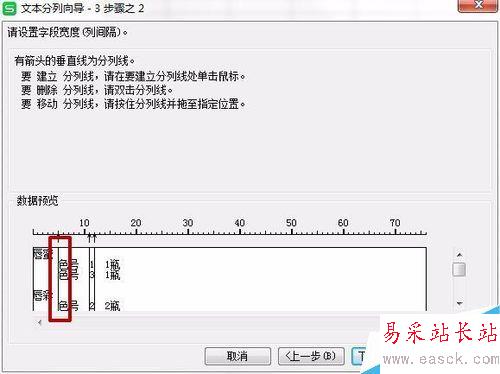 7、【分列線】就是下方【數據預覽】框內的直線。
