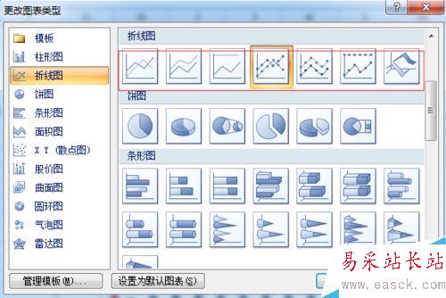 除此之外還有圓環(huán)圖,氣泡圖,雷達圖,股價圖,曲線圖,XY散點圖。