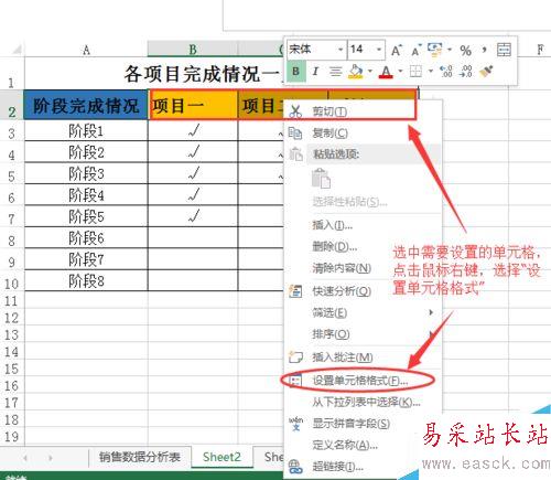 1、選中需要設(shè)置的表頭或者單元格,單擊鼠標(biāo)右鍵,選擇“設(shè)置單元格格式”,或者鍵盤(pán)操作Ctrl+1,進(jìn)入設(shè)置界面。