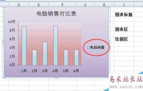 8、圖例的美化:因為只有電腦銷售數據無其他對比柱型,所以直接將其刪除就可以:選中按delete刪除即可;