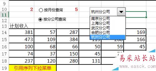 1、進行數據整理——分為兩個數據源計劃收入和實際收入,添加輔助列——引用序列下拉菜單。