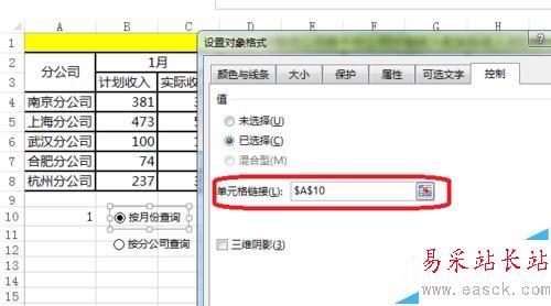 點擊按月份查詢的選項控件按鈕——(即A10=1)——組合框控件就顯示月份——點擊分公司查詢(A10=2)——組合框控件顯示分公司。