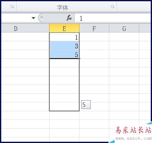 3、選中1,3,5,將鼠標(biāo)放在右下角,當(dāng)變成【+】時(shí)按住左鍵拖動(dòng)