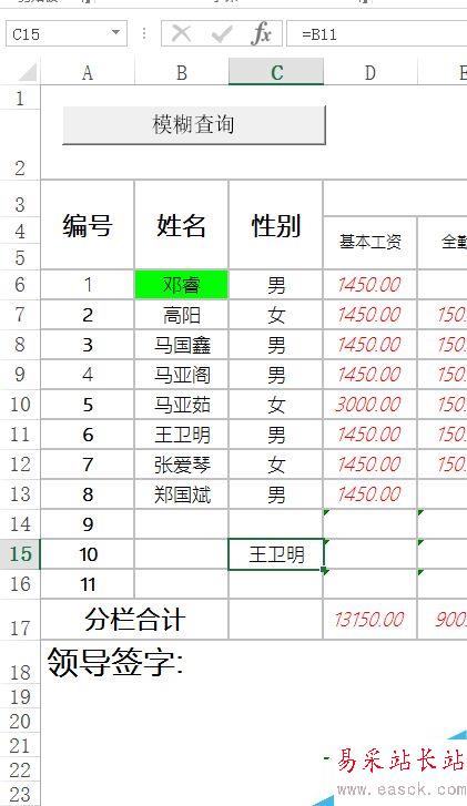 2、在例子中我們可以看到單元格內的數據來源于數據源這張工作表中的單元格數據引用,所以我們修改對應數據源工作表的單元格內的數據會顯示在5月工資的工作表中。