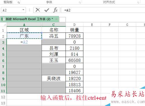 5、把所有空值全部選中,輸入公式=上箭頭,按住ctrl+enter鍵。